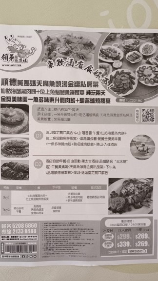 在香港最冷的兩日去了中山順德,氣溫只有幾度,今次跟團,兩日團主要是閑遊及享受美食,團費非常合理,安排不錯。有「黃媽媽私房菜」及「開心十八秒脆肉鯇」等。