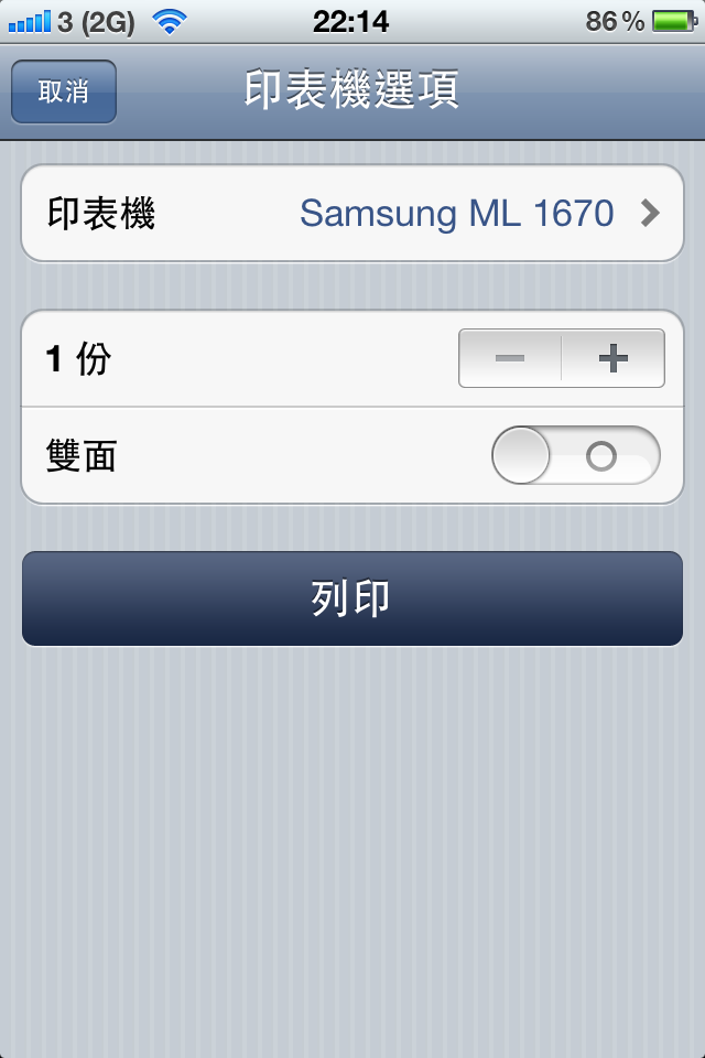 我的打印機是最陽春的Samsung ML1670,無wifi並且接在小眾使用的Linux Ubuntu 10.04中,絶不符合Air Print要求。正是山不轉時人轉。將打印機接成網絡打印機並設成共用,參考網絡文章Air Print with Ubuntu為打印機編寫服務檔案,最終成功使ML 1670被iphone 4操控,實現Air Print。十分Happy樂翻天了﹗