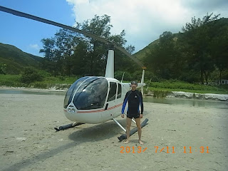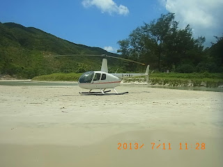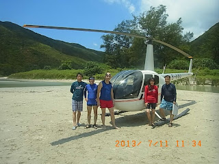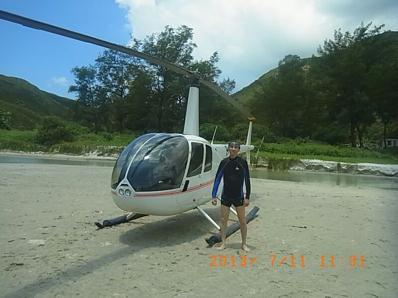 在暢泳時有直昇機降落沙灘,眾人把握機會與直昇機拍照。