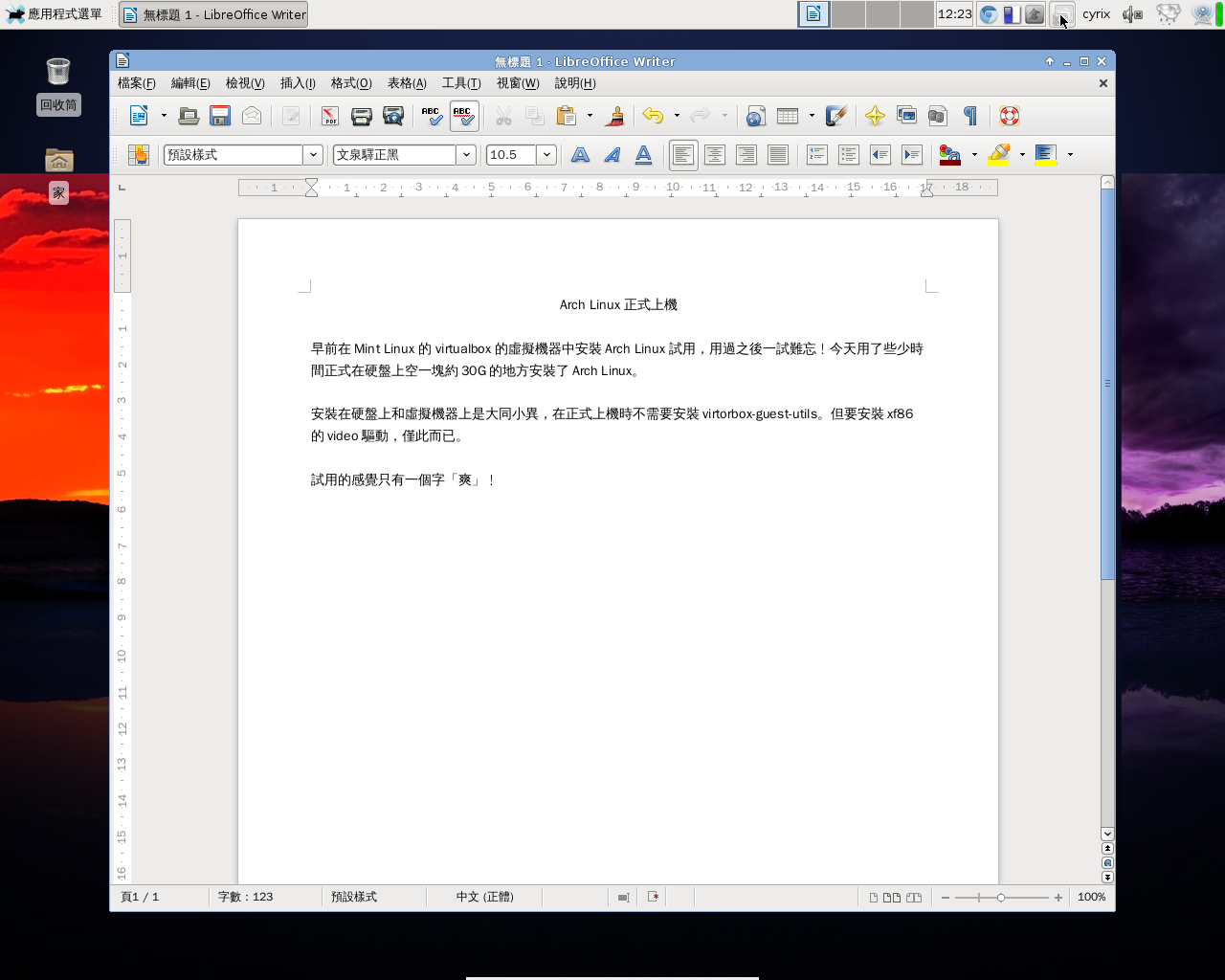 Arch Linux 正式上機