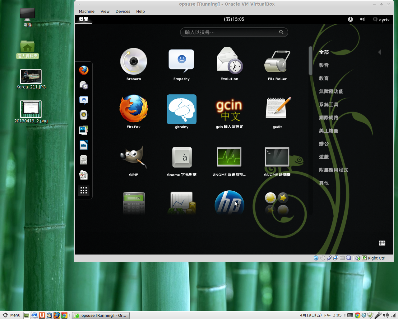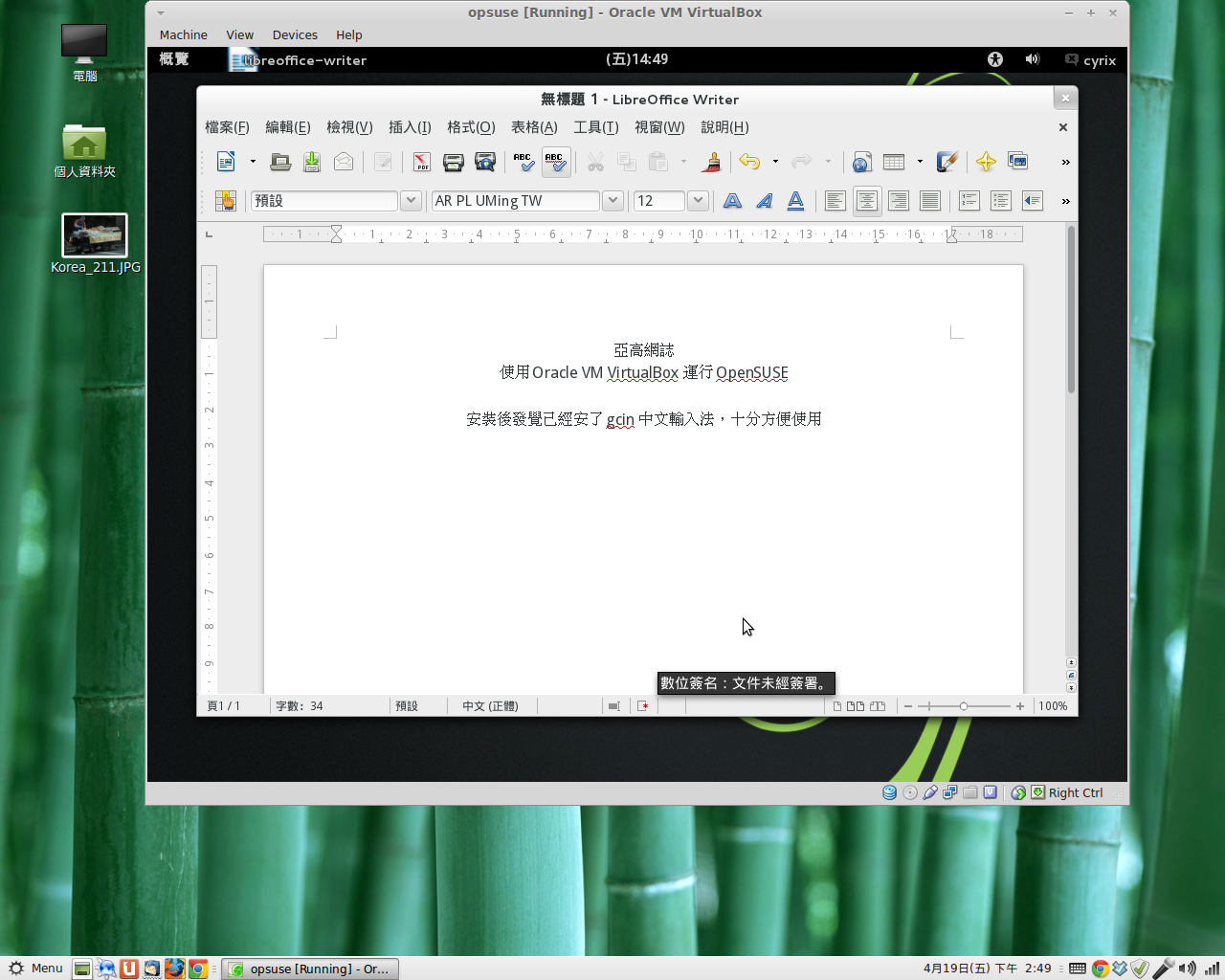 正體字漢化後的Vector Linux,有中文介面,可以輸入中文正體字如下圖:
