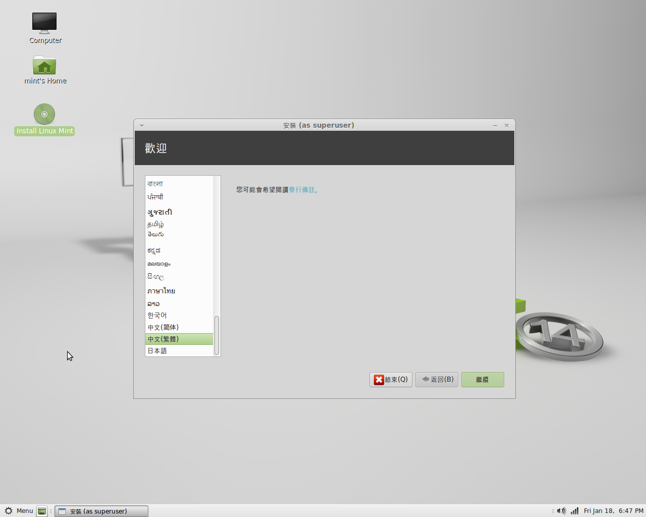竟然是「半唐蕃」,中文介面支援不全面,在Gnome上如Mate及Cinnamon中介面是「正體中文」,於是在網上啃了一個上午資料,最後結果成功將介面變成完完全全的中文,樂甚﹗
